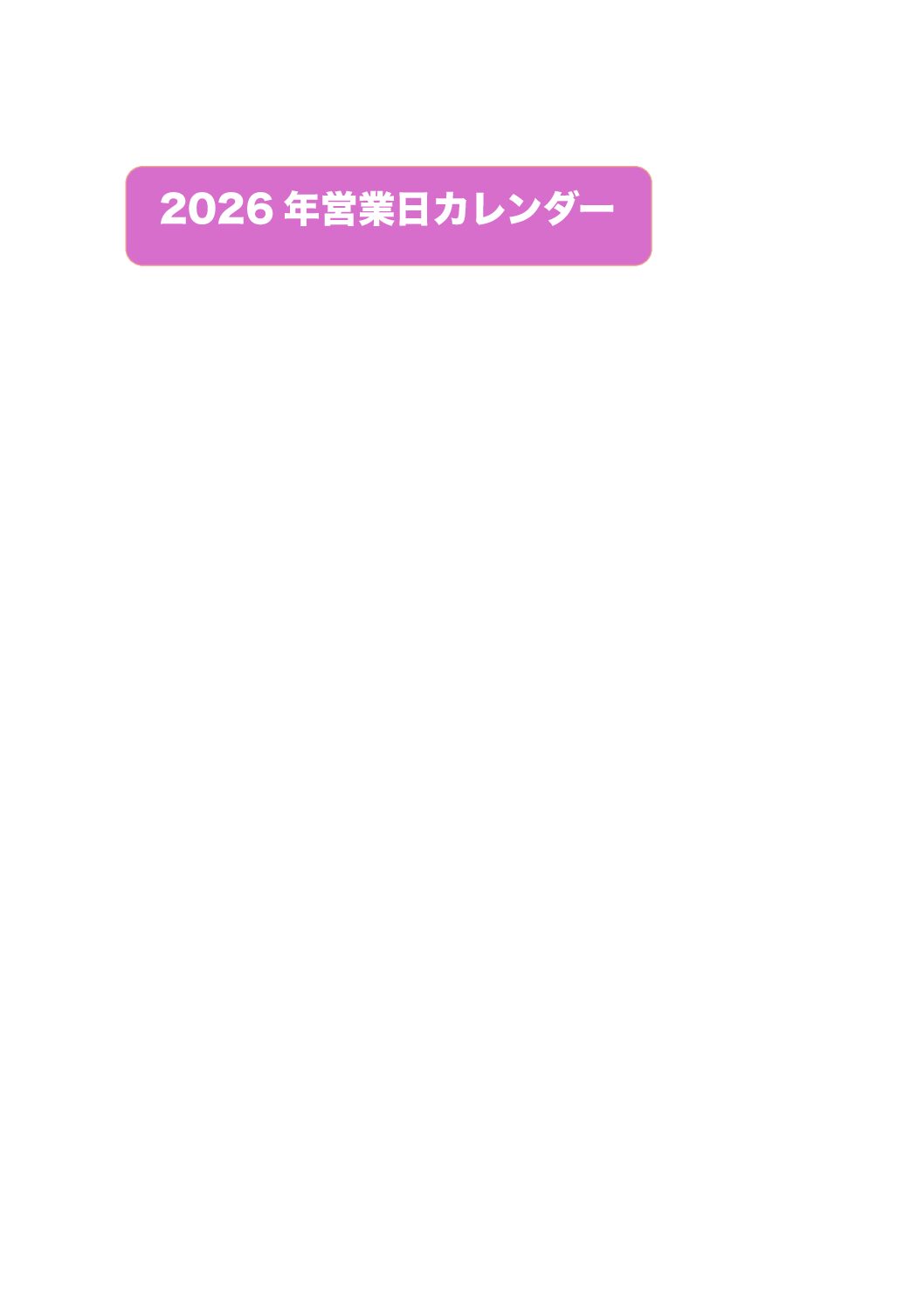 2026年カレンダー
