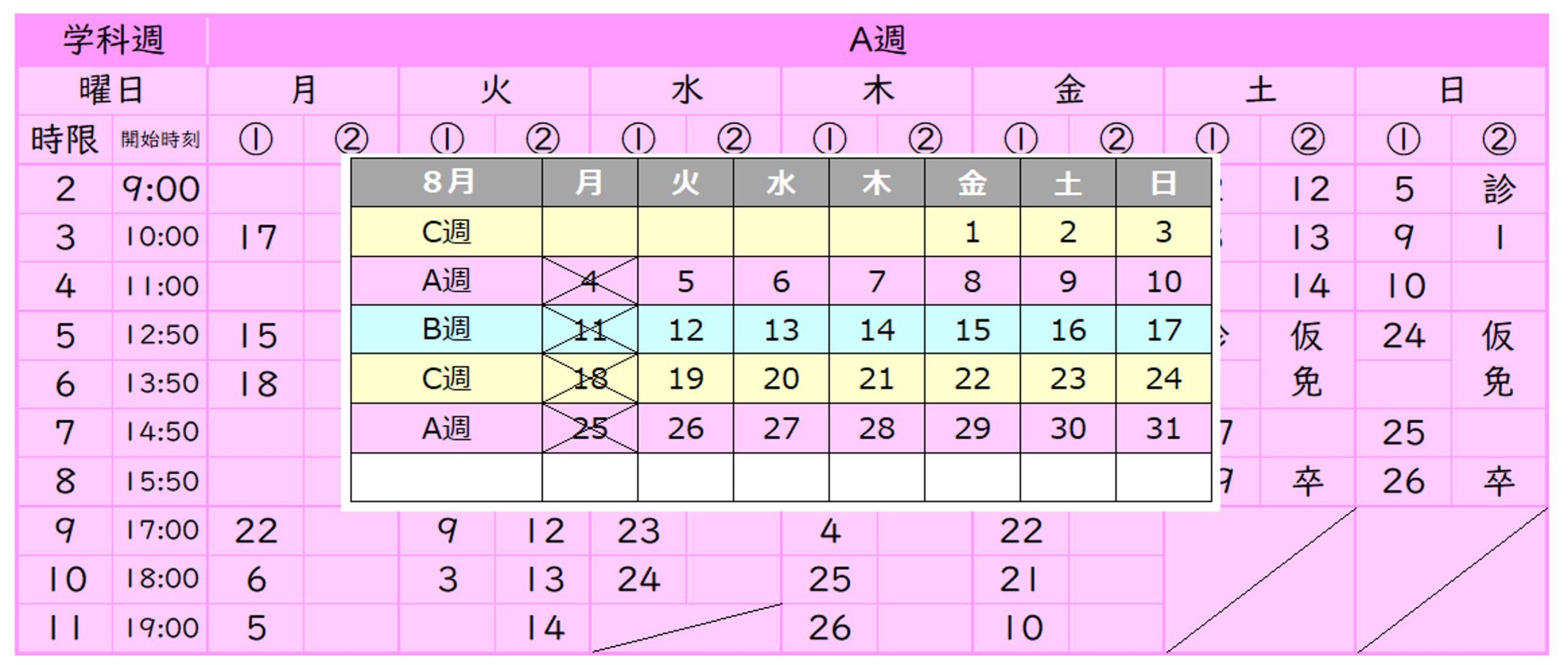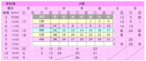 • 学科時間割表の見方